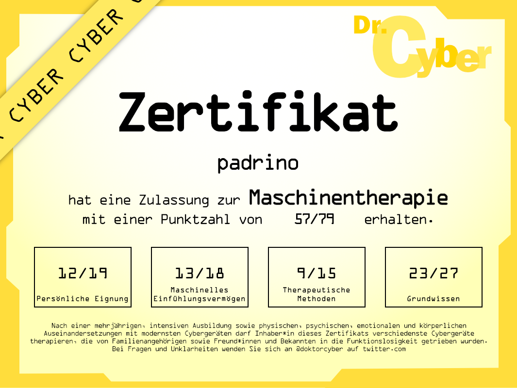 Ich finde, gerade eine Hausfrau mit Familie sollte eine abgeschlossene Berufsausbildung haben. Wenn mal die Kinder aus dem Haus sind oder es passiert irgendwas... dann habe ich nach zwei Jahren Dr. Cyber-Institut mein Jodeldiplom. Da habe ich was in der Hand!